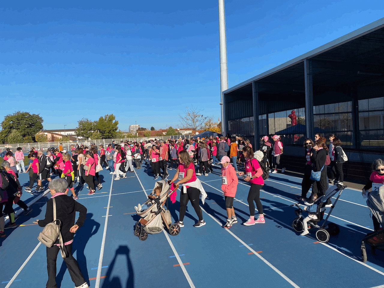Sous un soleil presque estival, le Palais des Sports Jacques-Chirac a accueilli, ce dimanche 12 octobre, la traditionnelle marche solidaire d’Octobre Rose, dédiée à la prévention et au dépistage du cancer du sein. Au programme : une marche de 4,5 km à travers les rues de Montauban, ainsi que des courses de 2 ou 5 km sur la piste d’athlétisme pour les plus sportifs. Une matinée ensoleillée et solidaire, marquée par l’engagement de nombreuses Montalbanaises et de nombreux Montalbanais, venus seuls, entre amis ou en famille.